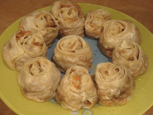 1) Тесто на розах обычное пельменное. Всегда при приготовлении пельменного теста добавляю растительное масло. От этого оно становится более эластичным и когда остывает, не деревенеет.