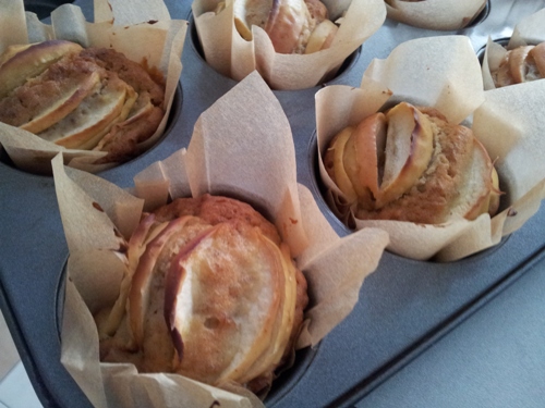 PS: по этому рецепту можно выпечь маффины с яблоками. Получается 12 штук. Печем около 30 минут)))