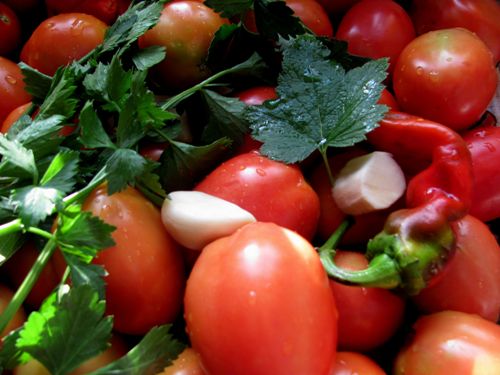 Мчусь на рынок. Покупаю все, что нужно. Помидорчики вытянутой формы – кто-то называет этот сорт «сливки», кто-то – «новичок». Хрен, зелень, чеснок, специи…