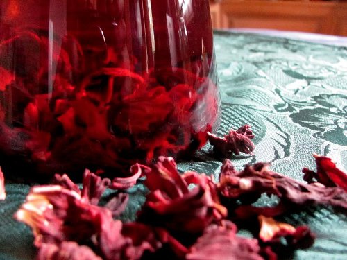 Кладу в холодную воду барбарис, черноплодную рябину, немного шиповника, яблоки или груши (возможны варианты с композицией из клюквы, облепихи и т. д.). Довожу до кипения, если есть, кидаю смородиновый лист. Сахар не кладу – мужчинам нравится с кислинкой. Разве что иногда ложечку «сыренья» – малины или смородины, перетертой с сахаром. Перед самым закипанием к любому сезонному компоту добавляю щедрую горсть каркаде. Приемчик подсказала моя подруга Лена – она врач и знает толк в здоровой пище. Гибискус прекрасно сочетается практически со всеми фруктами и ягодами, насыщает компот еще более ярким вкусом, цветом и ароматом. И в разы увеличивает пользу напитка: тонизирует, укрепляет иммунитет, снижает холестерин. Важно: если компот готовится в металлической посуде, лепестки суданской розы лучше заварить отдельно, как чай, в стеклянном или фарфоровом чайнике, настоять, процедить и добавить в готовый компот (металл придает напитку неприятный зеленоватый оттенок и портит его вкус).