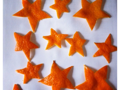 Вырезаем из кожуры звездочки (или любые другие формы), которые Вам нравятся, главное фантазия.
