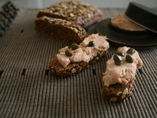 Рецепт родился довольно спонтанно вчера вечером. Хотели с Kingfisher придумать интересную закуску, используя нарезку семги. Начали колдовать.)) Результат порадовал – прекрасный вариант для завтрака с тонким ломтиком хлеба, или же сервируем с ломтиками помидора и бокалом игристого белого вина (именно так мы вчера и поступили!)