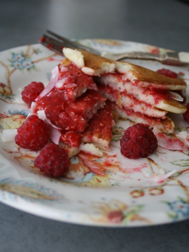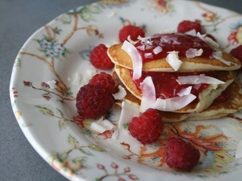 Кокосовые панкейки (оладьи) с малиновым соусом — готовила пару недель назад в прямом эфире одного канала. Они божественны. Всем совеьтую смело экспериментировать с кокосовым молоком!))